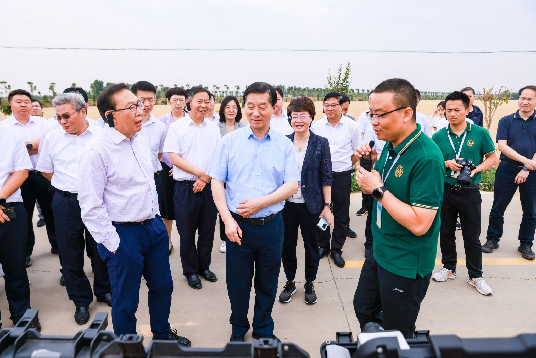 6月7日,成人视频 “智慧麦作技术”现场观摩会在山东汶上顺利举行,全国政协教科卫体委员会副主任、民盟中央副主席、自然资源部原副部长曹卫星,山东省政协副主席、民盟山东省委主委王修林,成人视频 党委书记王春春,成人视频 党委常委、副校长朱艳,山东省农业科学院副院长刘开昌,济宁市农业技术推广中心主任蔡文良、汶上县人民政府副县长刘海韵,临沂大学科学技术处处长、临沂市政府副秘书长王梁,山东省农业科学院作物研究所党委副书记刘宾、副所长曹新有,汶上县农业农村局党组书记、局长胡继广,农业农村部小麦专家指导组组长、扬州大学成人视频 教授郭文善,山东农业大学成人视频 教授孔令让,青岛农业大学机电工程学院学术院长尚书旗,江苏省小麦产业技术体系首席专家、江苏省农业技术推广总站副站长王龙俊,山东省农业科学院农业信息与经济研究所研究员阮怀军、安徽省农业科学院作物研究所研究员孔令聪、河南省农业科学院小麦研究所研究员李向东、河南省农业科学院农业信息技术研究所研究员郑国清,省市有关部门的领导,成人视频 、山东农业大学、青岛农业大学、临沂大学、巴基斯坦费萨拉巴德大学、中国农业科学院、江苏省农业科学院、山东省农业科学院、河南省农业科学院、安徽省农业科学院、江西省农业科学院、河南周口国家农高区管委会的相关专家,各市县农技推广部门、合作社及种粮大户代表等,以及中陕高标准农田建设集团有限公司、山东粮好农业服务有限公司等企业代表共120余人参加了会议,会议由朱艳主持。