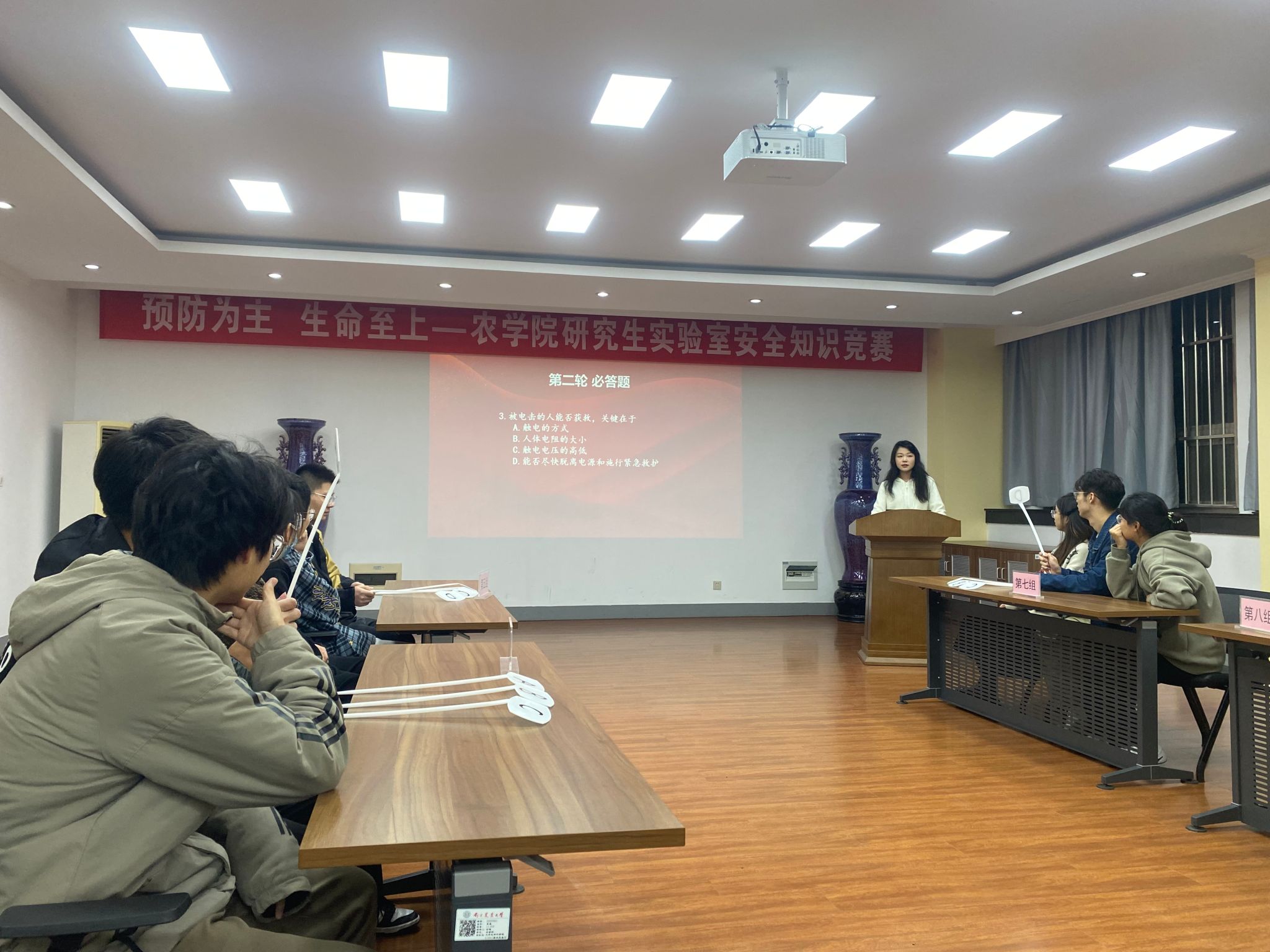 为深入学习贯彻习近平新时代中国特色社会主义思想,进一步普及国家安全知识,提高学生安全防范意识和自我防护能力,减少和避免各类安全事故发生,成人视频 于11月22日晚在生科楼E1001举办以“预防为主 生命至上”为主题的实验室安全知识竞赛。