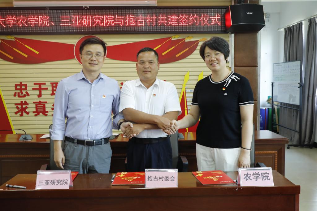 调研期间,南农大成人视频 、三亚研究院党政负责人一行赴崖州区抱古村调研,三方签署了党建和大学生社会实践基地共建协议,并就组织联建、产业联促、活动联抓、实事联办等方面的深入合作交换意见。