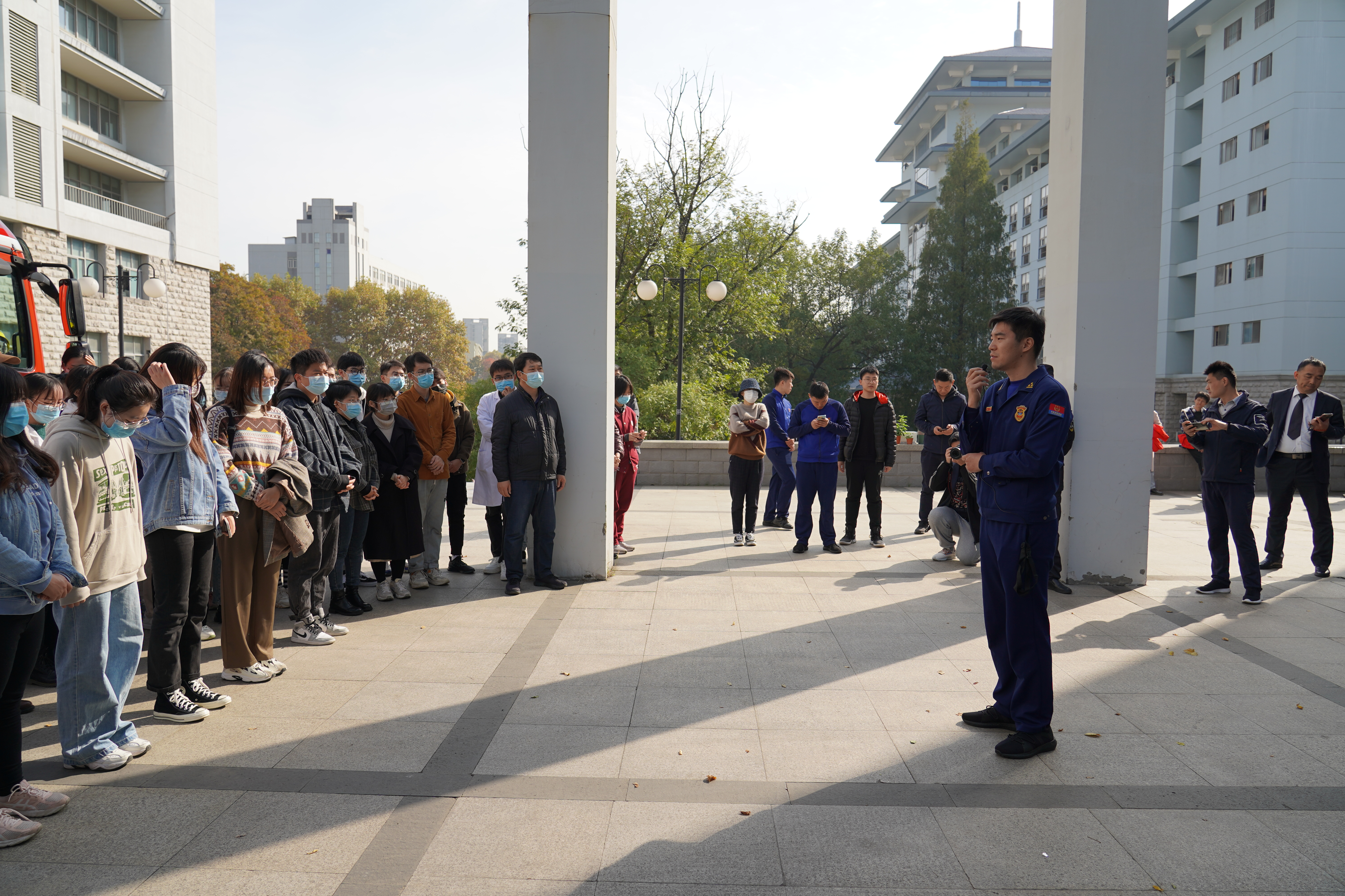为切实提高全院师生的消防安全意识,进一步增强安全自救能力和自我保护能力,11月13日上午10时,成人视频 在理科南楼组织开展了实验室应急疏散演练。玄武区消防救援大队及我校保卫处消防保卫科的工作人员应邀进行现场指导和消防安全教育,成人视频 一百余名师生参加演练。