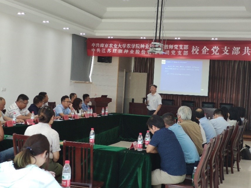 6月7日,种业科学系教师党支部赴泰州与红旗种业进行党支部共建,开展最佳党日活动。党支部书记鲍永美、学科负责人张红生、系主任刘康、钟山教学名师洪德林等教师党员,以及研究生和本科生党员代表等一行23人参加了本次活动。红旗种业党支部书记贾东升、副总经理王德成、华荣和孙建荣、党支部副书记陈建忠等党员与我方进行了对接。