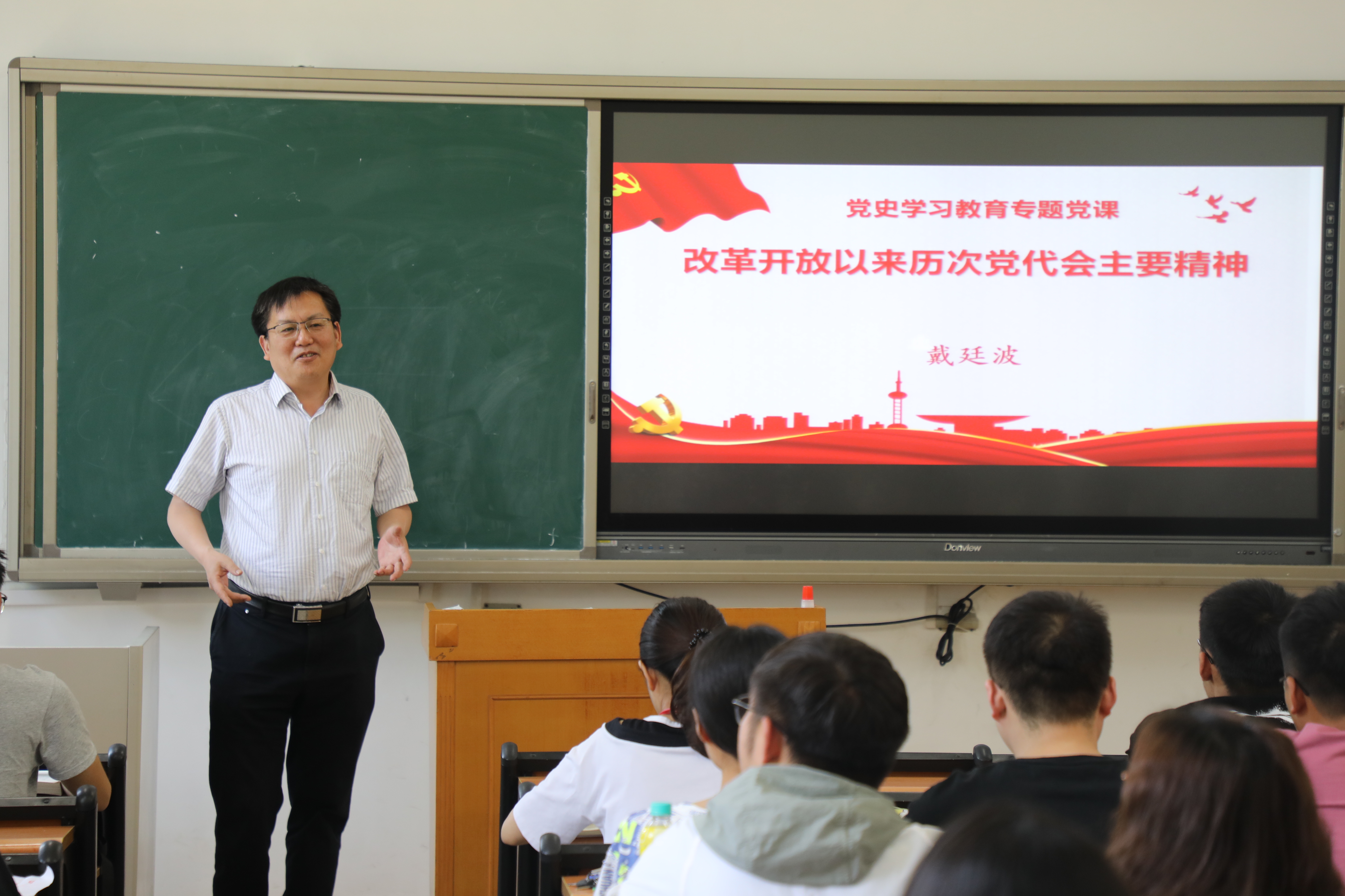 2021年6月23日下午,成人视频 党委书记戴廷波在教学楼A102教室以《改革开放以来历次党代会主要精神》为主题讲授专题党课。成人视频 新发展的学生党员及部分教师党员聆听了此次党课。