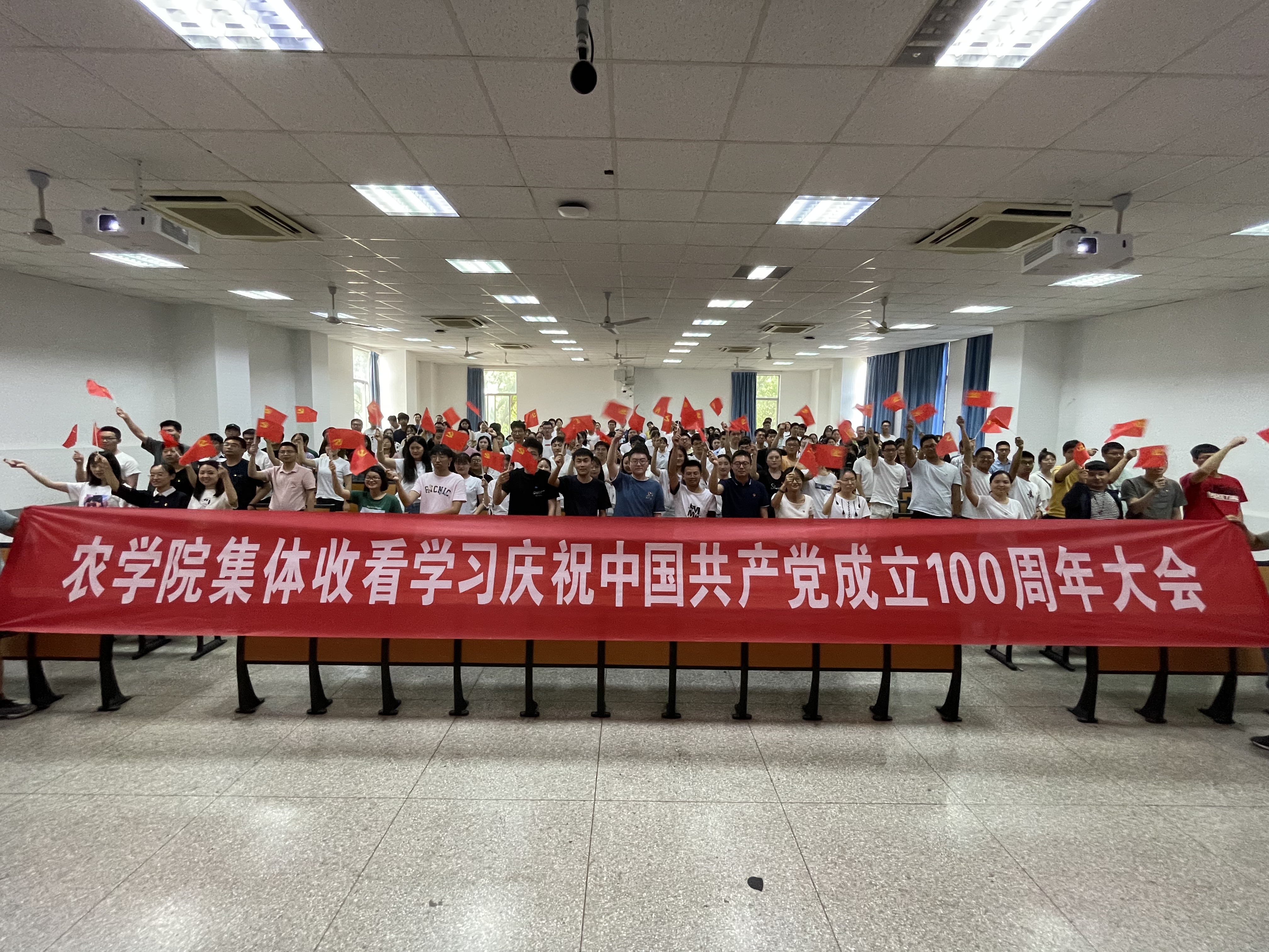 院党委书记戴廷波说道,1921-2021,我们党的百年,是矢志践行初心使命的百年,是筚路蓝缕奠基立业的百年,是创造辉煌开辟未来的百年。习近平总书记的讲话指出,中国共产党带领全国各族人民从列强封锁到伟大复兴,从一无所有到繁荣昌盛,形成了坚持真理、坚守理想、践行初心、担当使命、不怕牺牲、英勇斗争、对党忠诚、不负人民的伟大建党精神。我们要进一步认真贯彻落实习近平新时代中国特色社会主义思想和党中央关于高校工作的各项决策部署,在学校党委的领导下,牢记为党育人、为国育才使命,坚持以“立德树人为根本,以强农兴农为己任”,为乡村振兴和农业科技自强自立做出新贡献!