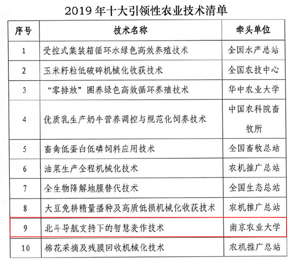 近日,农业农村部科技教育司公布了2019年十大引领性农业技术。成人视频 智慧农业研究院研发的“北斗导航支持下的智慧麦作技术”入选,并获批技术示范经费100万元。