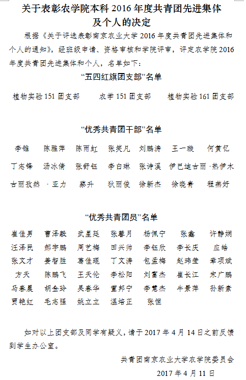 关于表彰成人视频 本科2016年度共青团先进集体及个人的决定