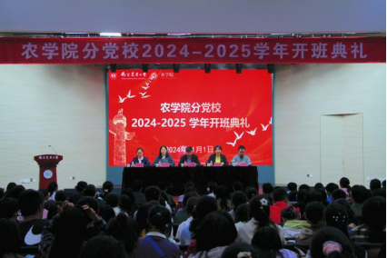 11月1日晚,成人视频 分党校2024-2025学年开班典礼在卫岗校区大学生活动中心报告厅举行。成人视频 党委书记、分党校校长庄森,党委副书记、分党校副校长殷美,团委副书记、本科生辅导员孙小雯,团委副书记、研究生辅导员陈杰,本科生辅导员史可欣、张华洲,分党校秘书长张佳瑜出席开班典礼。来自成人视频 的322名启蒙班学员及分党校成员线上线下参加,典礼由殷美主持。