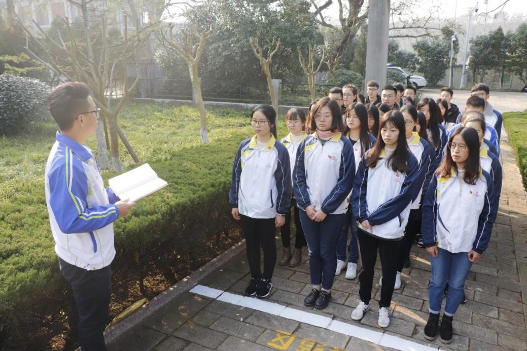 分党校组织本科生全体党员前往侵华日军南京大屠杀遇难同胞东郊丛葬地祭奠死难者。分党校实践部部长张文才组织本科生党员将菊花献在纪念碑上,全体学生环绕纪念碑缓行一周,秋菊寄哀思,朵朵菊花寄托了同学们最沉重的缅怀。