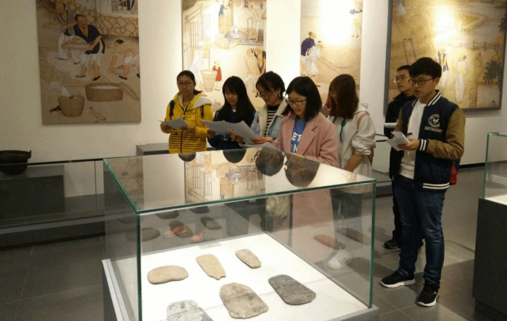 从农业文明起源到民风民俗,老师对展品进行了详细的介绍,每一个参与培训的同学都认真听取老师的讲解,在讲稿上做内容的补充记录并及时将不懂的内容及时反馈。培训的最后,老师带领大家进入竹刻艺术临时展厅进行参观。