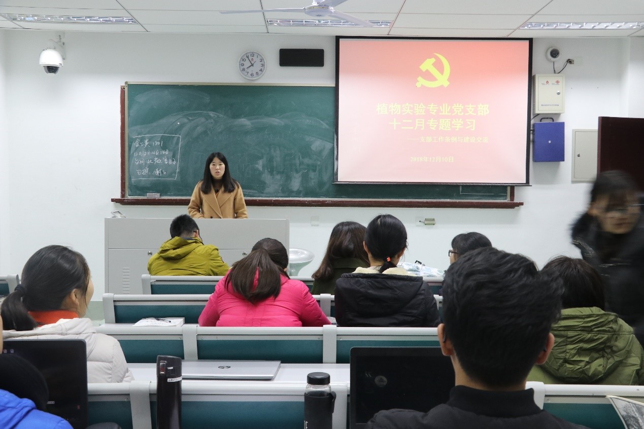 近日,中共中央印发了《中国共产党支部工作条例(试行)》,《条例》以习近平新时代中国特色社会主义思想为指导,贯彻党章要求,既弘扬“支部建在连上”的光荣传统,又体现基层创造的新做法新经验,对党支部工作作出全面规范,是新时代党支部建设的基本遵循。12月10日晚,植物实验专业党支部于主楼230开展分班讨论,深入学习《中国共产党支部工作条例(试行)》(以下简称《条例》),并结合支部实际工作进行了讨论。