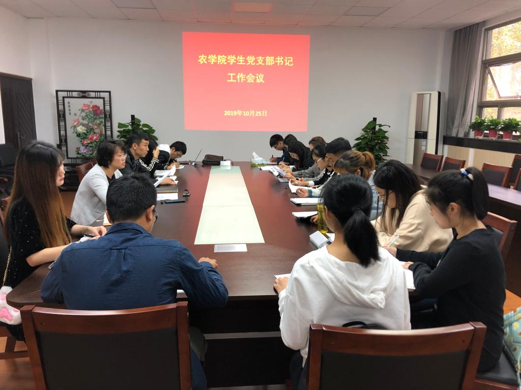 10月25日下午,成人视频 学生党支部书记在学院会议室召开工作会议。学院党委副书记殷美、辅导员王彬、许娜及全体本研支部书记参加会议。