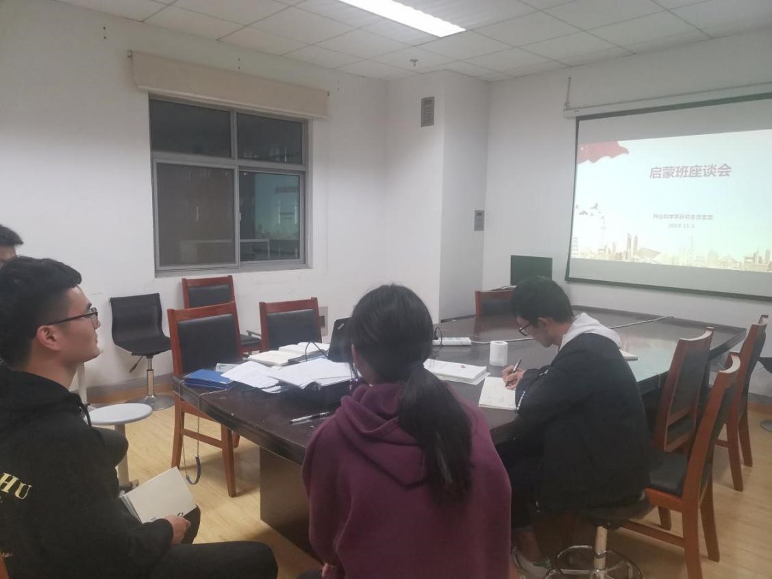 最后对本次会议进行了总结并进行了启蒙班座谈会,加强了与启蒙班成员之间的交流,并对启蒙班同学的入党动机以及日常的生活作分作了一个初步的了解。