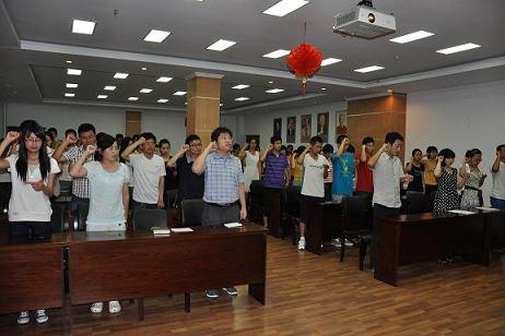 6月29日下午,为庆祝建党90周年,成人视频 研究生党支部在学院报告厅举行入党宣誓仪式和重温入党誓词活动,喜迎党的90岁生日的到来。成人视频 党委副书记刘亮同和研究生秘书郭晓鹏出席了会议,参加会议还有研究生各党支部书记、24名新发展的预备党员和部分老党员代表