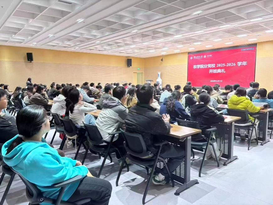 11月7日晚,成人视频 分党校2025-2026学年开班典礼在卫岗校区图书馆报告厅举行,滨江校区农学楼报告厅设分会场。成人视频 党委书记、分党校校长庄森,党委副书记、分党校副校长史文韬,专职组织员许娜,研究生辅导员孙小雯、张华洲,本科生辅导员史可欣、徐珂凡,分党校秘书长庞颖出席开班典礼。来自成人视频 的323名启蒙班学员及分党校成员通过线上线下方式参加,典礼由史文韬主持。