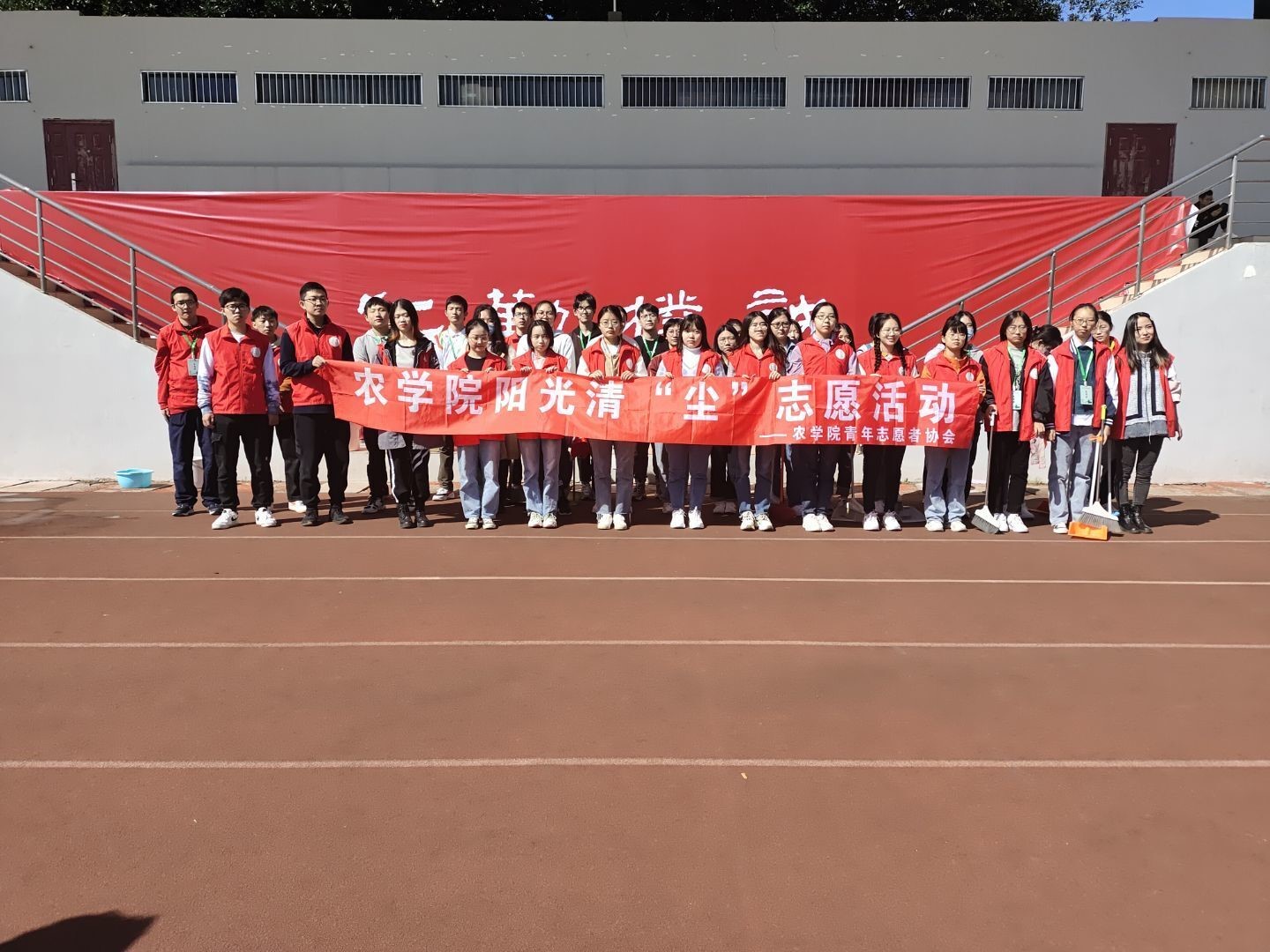 为进一步做好“建设美丽校园,创建优雅环境”工作,提升校园环境卫生质量,2021年 10月17日,成人视频 青年志愿者大队招募了43名志愿者,在学校操场的主席台两侧及玉兰路一侧的观众席处,开展了“阳光清尘”志愿服务活动。