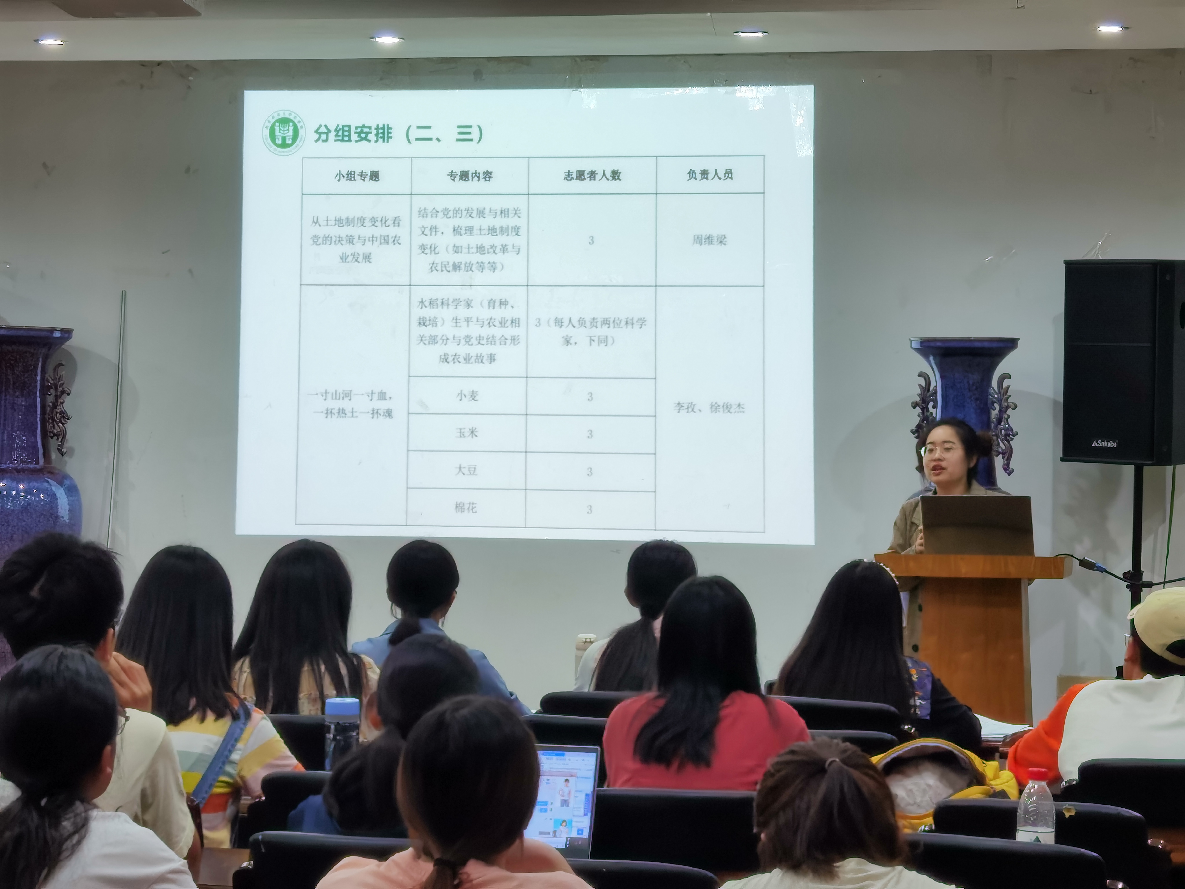 本次培训会的内容主要分为分组安排、案例介绍、答疑三部分。叶彤结合相关案例,介绍调研的具体内容以及本次活动的意义。此次培训会旨在引导同学们结合专业知识对党史进行挖掘,探寻党史在农业史中的缩影,并把学党史与农业史、乡村振兴相结合,指导同学们积极开展此次成人视频 “党史中的农业史”调研。期间,叶彤为志愿者讲解此次调研实践活动的五个大主题:“党史与农业史中改变你我命运的时刻”、“从土地制度变化看党的决策与中国国农业的发展”、“一寸山河一寸血,一抔热土一抔魂”、“小人物的大影响:乡村振兴优秀模范”、“党旗飘飘,不再浑身泥泞挥着镰刀”。在青年志愿服务部成员的引导下,志愿者依各自兴趣结成13个小组。