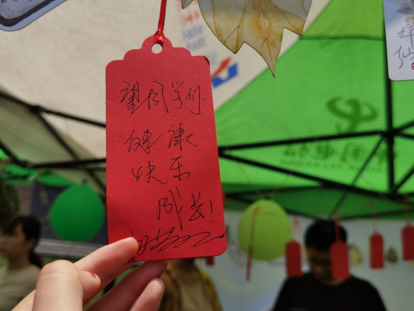 在活动过程中,成人视频 本科生辅导员孙小雯向前来参观的领导、同学介绍了成人视频 开展的系列心理健康教育工作,并介绍了现场布展和活动设计的意义,学校党委副书记受邀为同学们在红色卡片写下了“望同学们健康、快乐成长”的寄语,殷切希望同学们身心健康,乐观面对生活中的小挫折,学会正确对待、处理问题,健康、快乐地成长。