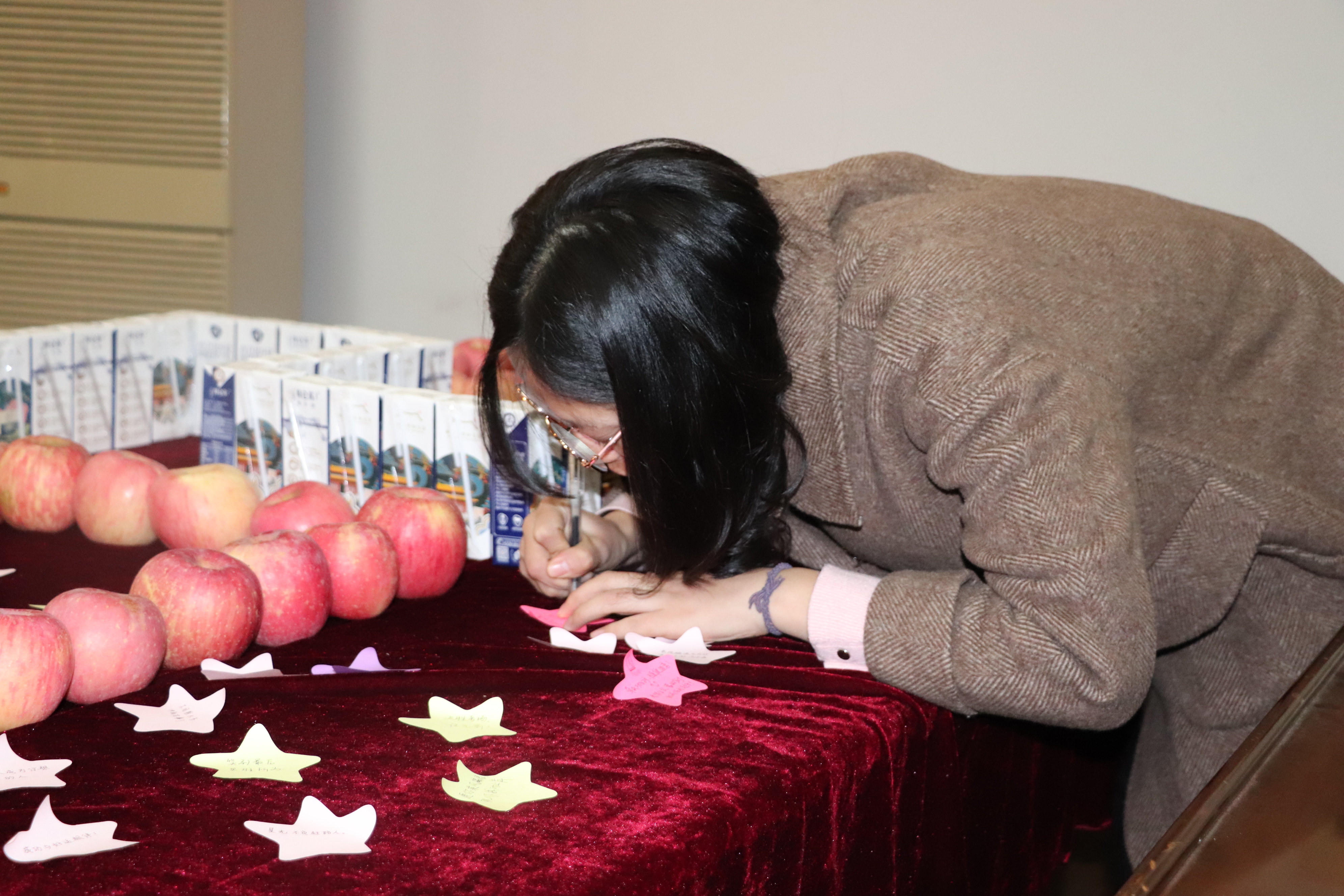 11月29日晚,学校宿舍楼传来了阵阵欢笑声,备考研究生的成人视频 大四学生都收到了一份饱含祝福寓意的礼物——“硕果”祝福加油包。加油包包含了牛奶、苹果以及由辅导员和学弟学妹们手写的祝福语:“笑看人生峰高处,唯有磨难多正果”“你努力的样子真美,加油考研人”“漫漫研途,你从来不是孤身一人,成人视频 与你一起加油!”……