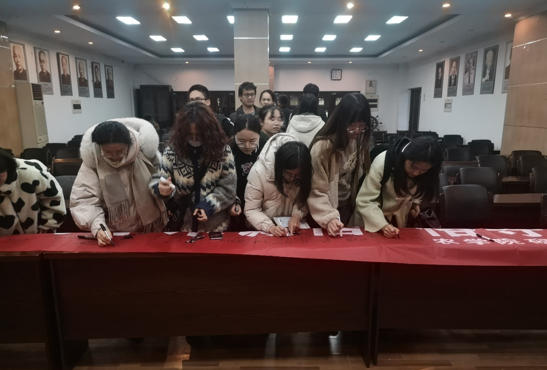 学术之道,贵在诚信,在做学术的过程中一定要“做真”“做诚”,应自觉维护学术诚信的大环境,从身边做起,从自我做起,坚决抵制学术不端行为。学院号召同学们立诚信身、做诚信人、交诚信友,并由学生干部带领全院各个班级学生签署诚信承诺书,许下以身作则、践行诚信的庄严承诺。