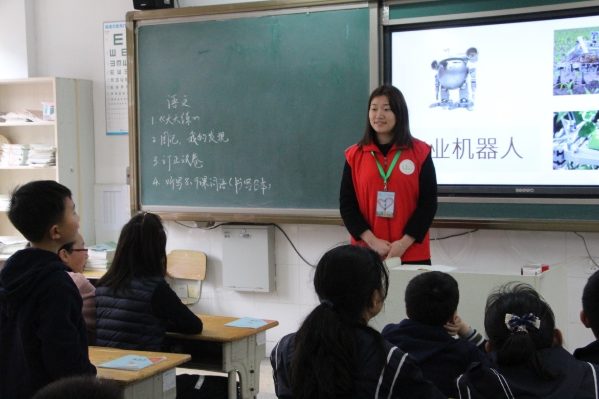 3月29日下午,成人视频 青年志愿者大队的负责人和6名志愿者在南京理工大学实验小学四年级(3)班教室,开展了新一学期的“稼穑少年”科普课堂志愿活动,约30名小学生参与了本次课堂活动。