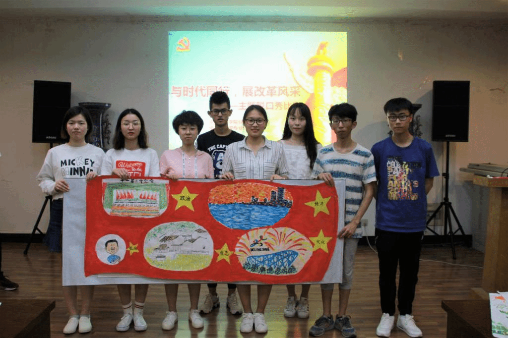 分党校联合农学专业一党支部举办了此次以“与时代同行,展改革风采”为主题的改革开放四十周年主题教育活动,各支部成员从政治、经济、文化、生活四个方面展示了改革开放以来中国发生的巨大变化。本科生辅导员王彬老师、姚敏磊老师、马丽娟老师及各支部书记出席并担任本次比赛的评委。