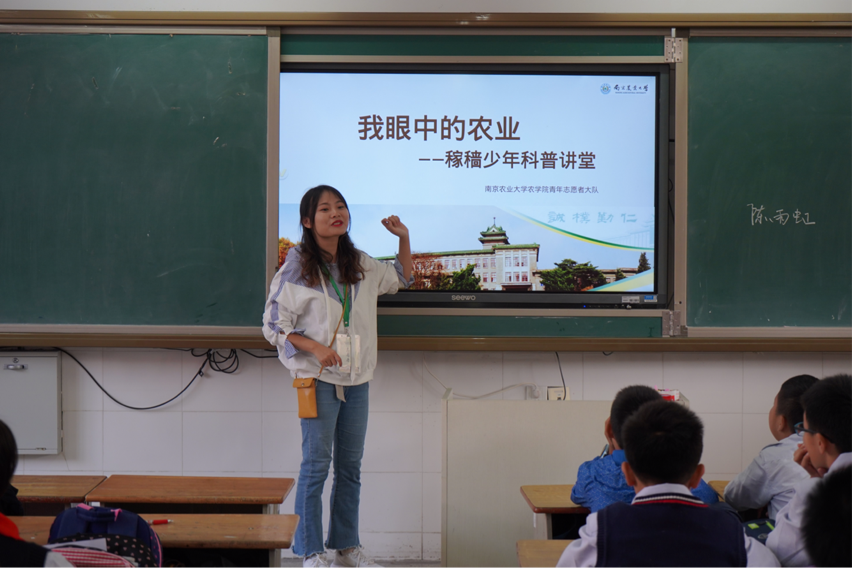 通过科普讲堂的方式丰富小学生的业余生活,学习农业知识。青少年是国家发展的希望,提高青少年的文化素养,丰富青少年的知识网络至关重要。此外,当代大学生应积极传播所学知识,在社会活动中积极奉献自己,将所学回报社会。