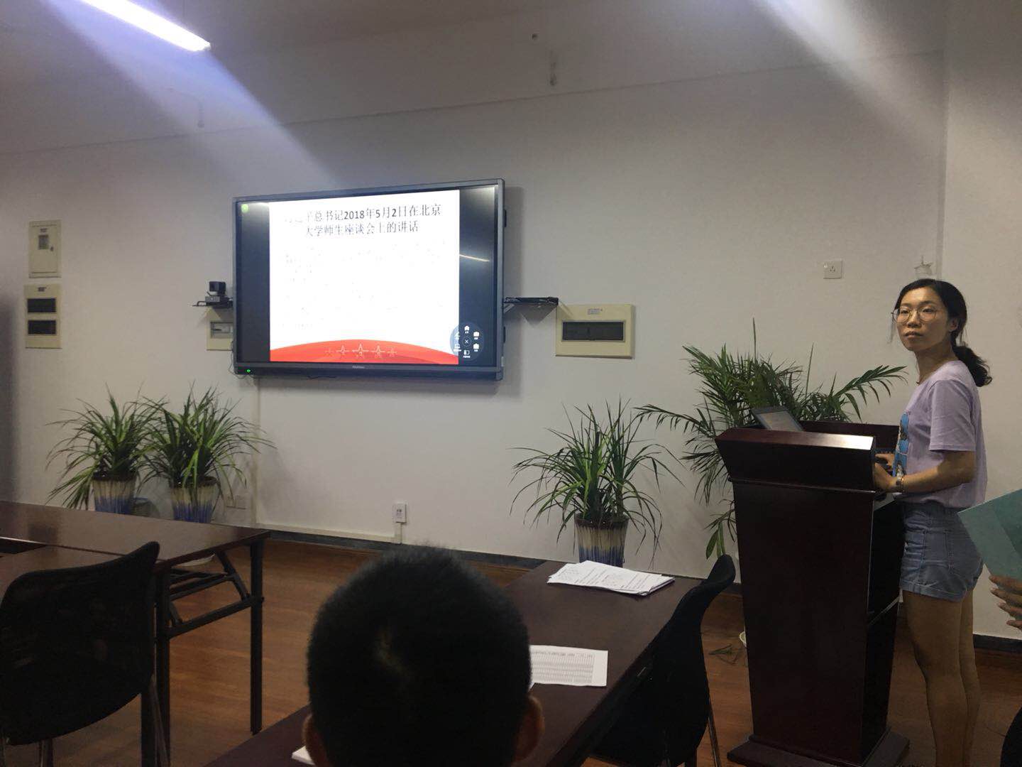 会议进行到第二部分,支部书记带领支部成员进行理论学习,包括习近平总书记5月4日在纪念马克思诞辰200周年大会上的讲话、全面从严治党文件精神、习近平总书记5月2日在北京大学师生座谈会上的讲话。利用ppt与纸质材料,重点解读了习近平总书记的五四讲话内容,引起社会青年群体强烈反响。支部成员也从中感悟到每一个青年都应该成为社会主义建设者和接班人,不辱时代使命,不负人民期望!