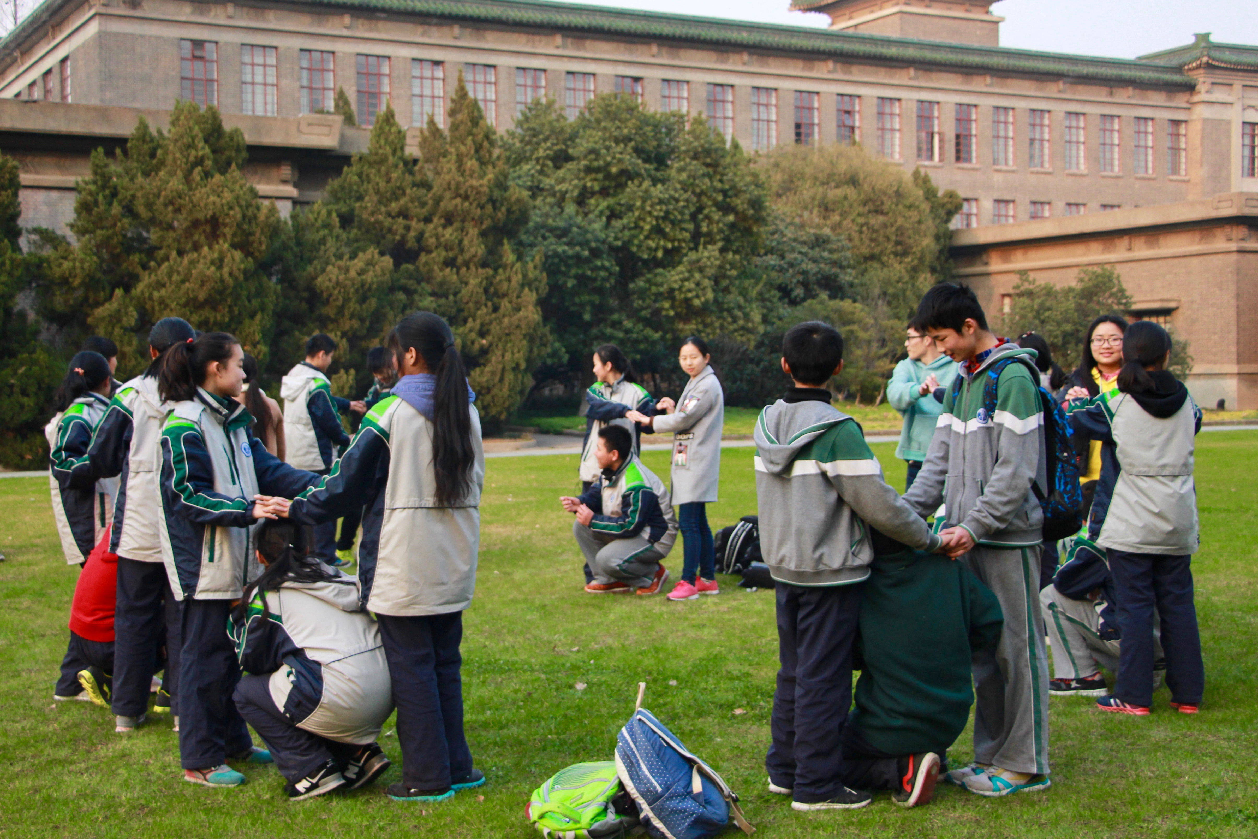 所有人员在南门集合后,主持人马勇和陈亚萍的带领大家沿着金陵路,中央路来到主楼前的草坪。在草坪上,由马勇带领志愿者和学生进行了松鼠和树的游戏,现场气氛非常活跃。之后,在老师和志愿者的组织下,学生们围成一圈,由马勇讲解了植树节的来历,低碳方式,植树的步骤及植树时所需注意事项等相关问题。在说到低碳方式时,大家都积极踊跃的说出自己所知道的低碳方式。看来低碳已经深入到我们每一个人的心中。