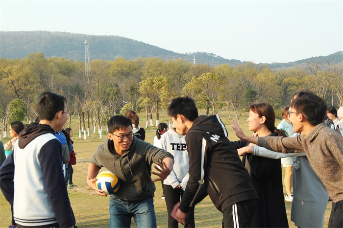 大家以抽扑克牌的形式分好小组,以学校生科楼为起点,途中经博爱路、中山陵停车场、博爱坊、大转盘等地到达终点灵谷寺。各组团结协作猜出指定字谜并在该景点处拍合照,一路上同学们相互了解并合作完成指定任务。在全体到达后,又分组进行游戏pk环节。通过球球大作战、信物传递、多手多脚等丰富有趣的游戏,活动现场气氛达到高潮。游戏中每一小组都不甘示弱,在组长的带领下,每个组员积极出谋划策,增强了团队协作能力。