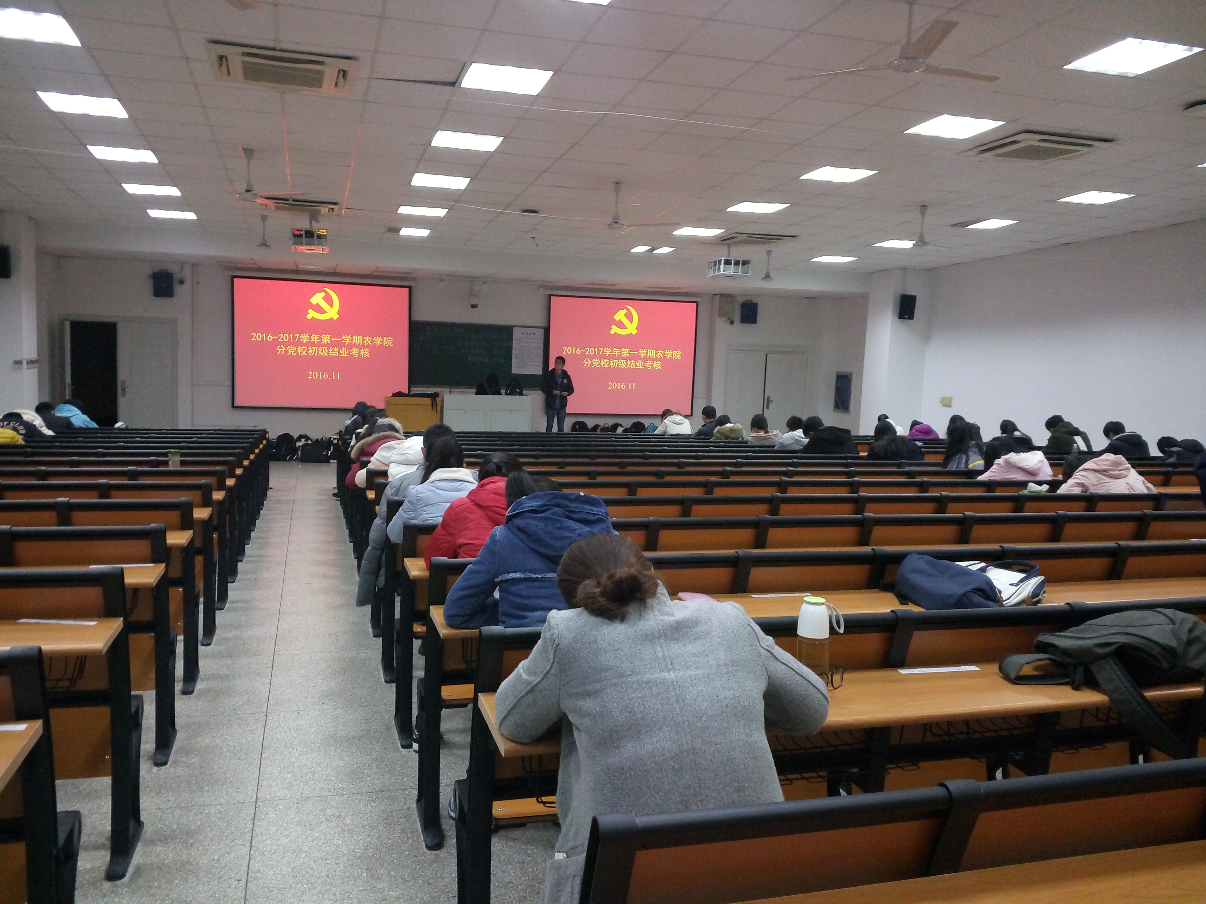 11月26日晚,成人视频 分党校在教学楼进行了2016-2017学年第一学期成人视频 分党校启蒙培训班结业考核和初级结业考核,参与启蒙培训班结业考核的是申请入党的大一新生,参与初级结业考核的为期满一年及以上的积极分子。大一新生班级的带班党员参与了此次监考。