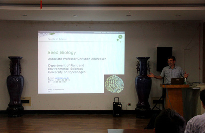 Christian教授主要从事种子科学与技术及杂草生物学与管理技术等方面的研究,并且长期从事于本科生专业教育。他首先介绍了欧洲种业发展历程及现状,并列举了部分欧洲地区重要作物的种业发展情况。随后Christian教授以萌发状态的种子作为切入点,讲解了种子基本结构、种子休眠等方面,重点讲解了种子萌发过程中水分吸收变化、需氧时间段、萌发时间及内部物质变化等状态变化。