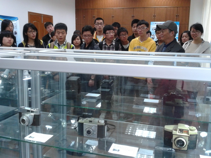 据了解,本次收藏展共展出了一百余件不同年代,不同样式的相机,这些相机均由吴教授收藏。其中德国、日本制造居多,同时也看到在中国制造的“海鸥”牌老相机。在参观过程中,吴教授为大家做了关于相机的发展演变的详细介绍。同学们对于可以近距离看到这些日常生活中难以见到的老式相机感到惊喜,同时也对相机制造业的飞速发展感到惊叹。参观完后同学们纷纷说道,这些相机是历史文化的真正见证者和记录者,是一笔珍贵的遗产。在浮躁的时代,我们要常怀对过去的敬重和感恩,不忘过去才能珍惜现在,继往开来。