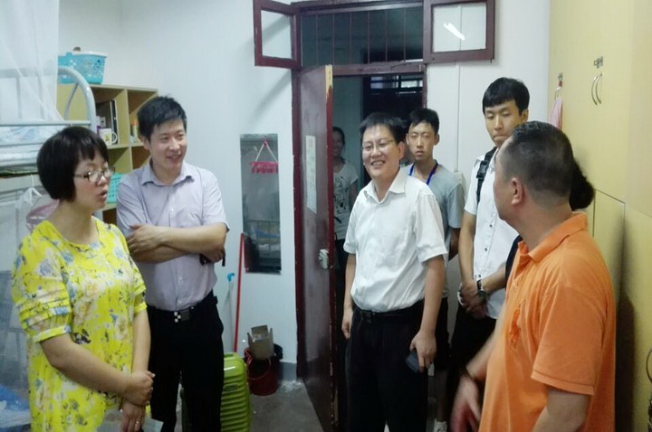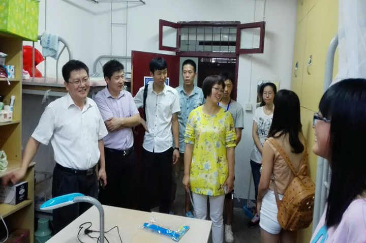 9月6日晚七点,成人视频 党委书记戴廷波,党委副书记庄森,本科生辅导员殷美、王彬以及学生会干部深入宿舍走访了成人视频 2014级新生。
