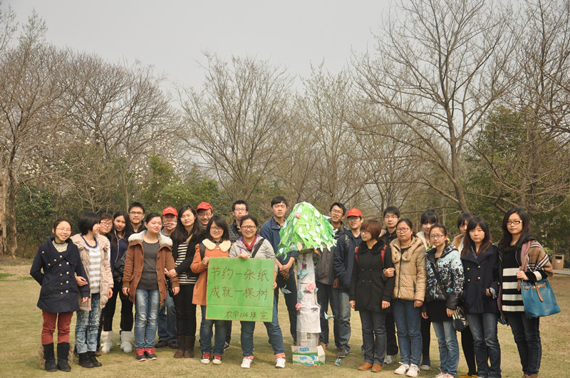 3月12日植树节这天,为了向更多的民众宣传环保知识,鼓励他们参与到环保行动中来,农学114班和成人视频 生活部联合开展了“节约一张纸,成就一棵树”主题活动。