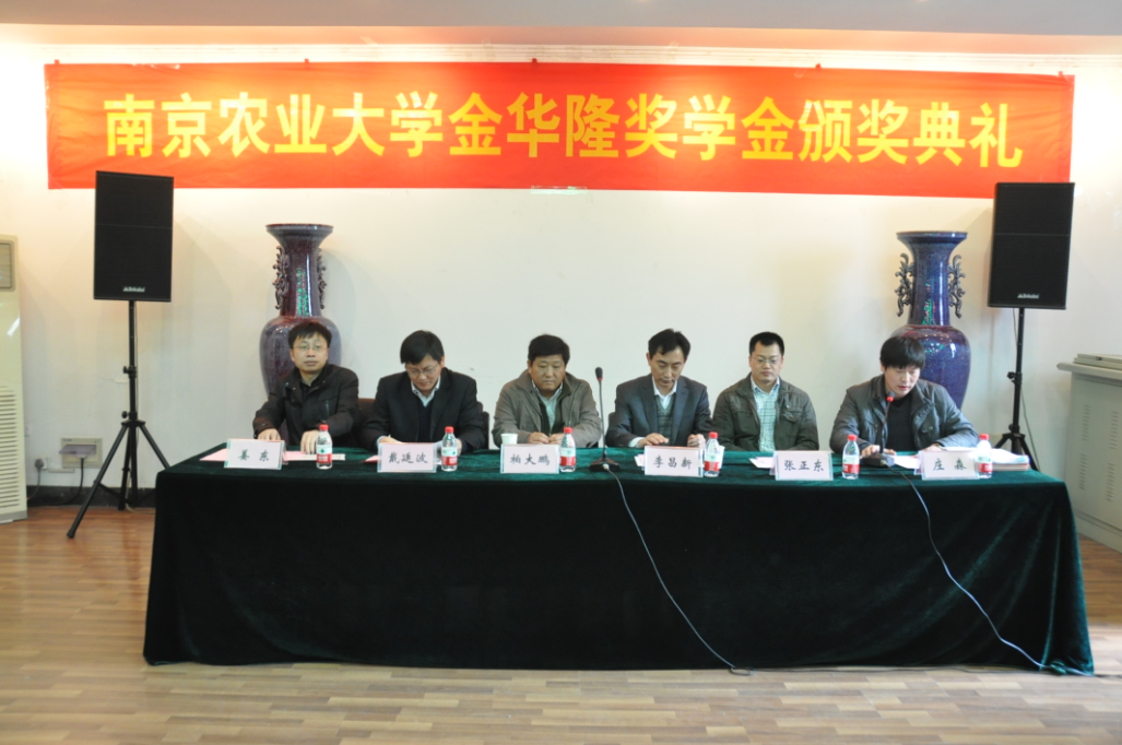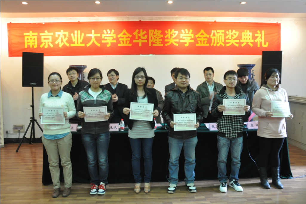2013年4月11日上午11点,成人视频 第一届金华隆奖学金颁奖典礼在生科楼E1001举行,颁奖典礼由成人视频 党委副书记庄森主持,江苏金华隆种子科技有限公司首席育种家、董事长兼总经理柏大鹏、副总经理张正东、农村发展学院党委书记李昌新、成人视频 副院长戴廷波、副院长姜东担任颁奖嘉宾。