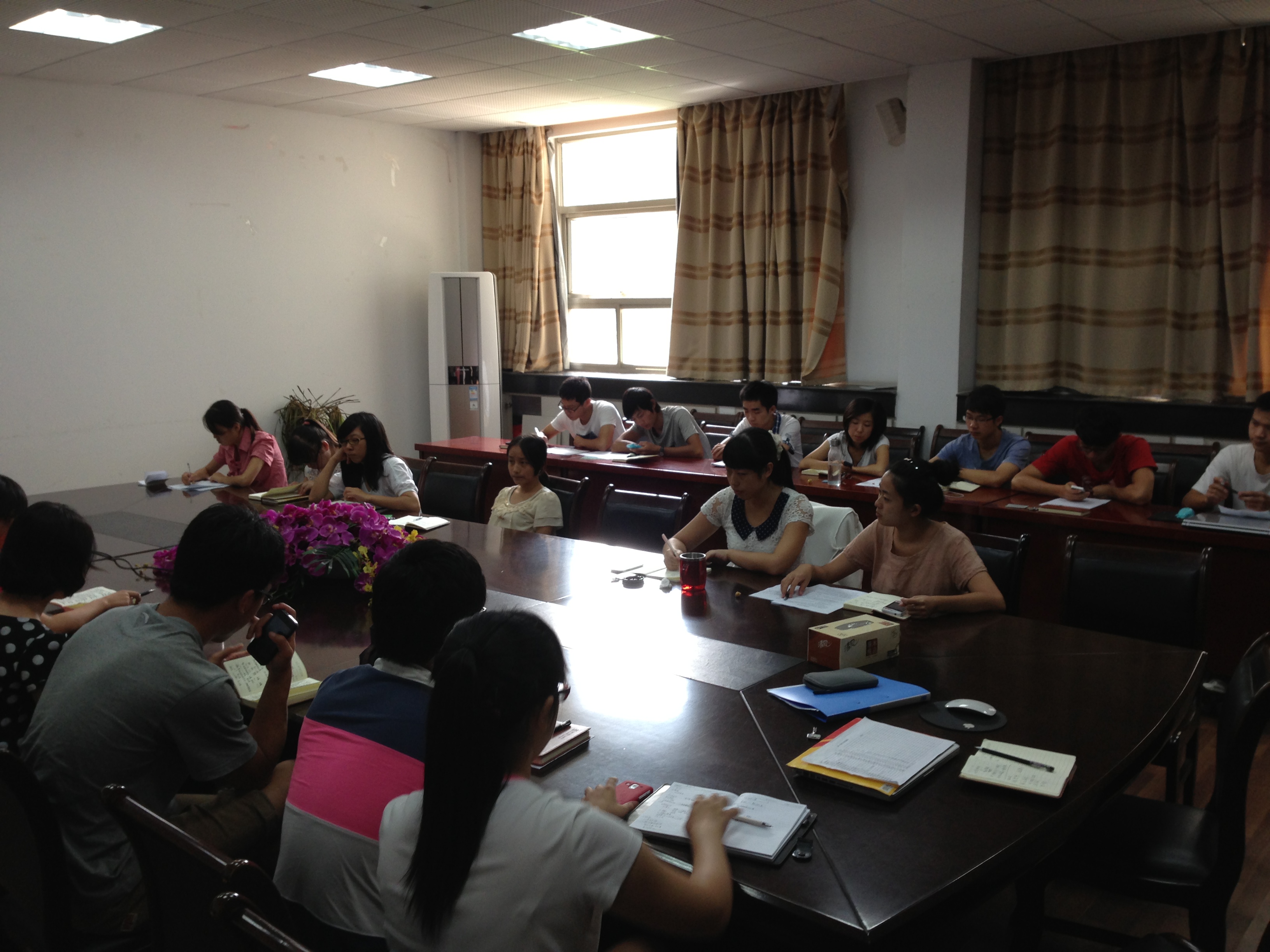 会议开始由学生会主席周庆鹏做开场发言,他简要介绍了新一届学生会组成情况,对新一学年的学生会工作做了初步规划,并希望各部门能团结一致,分工明确。接下来,各部门结合自身具体情况,从大处着手,小处着眼,从部门的职能以及认识理解、精确到周的活动时间安排、部门基础工作、部门工作创新点等方面阐述了自己的工作计划。条理清晰、娓娓道来,不时赢得阵阵掌声。每个部门汇报完后,彭益全老师和在场其他成员针对汇报提出了问题和建议,汇报人也细心记录关键要点及时改正。所有成员汇报完后,彭老师针对汇报情况做了总结发言,对新一学年度的学生工作提出了新的要求和希望,尤其是即将到来的迎新工作,希望各部门能统筹划一,有条不紊,井然有序地开展工作。