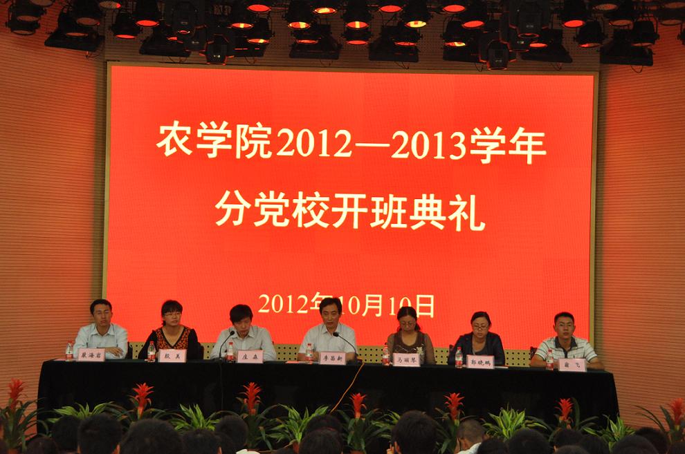 党委书记李昌新、党委副书记庄森、党务秘书马丽琴、研究生辅导员郭晓鹏、本科生辅导员殷美、本科生辅导员裴海岩、分党校秘书长翁飞及全体2012级本科生和部分研究生代表参加了开班典礼。开班典礼由庄森主持。