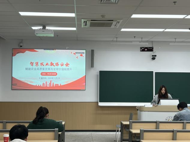 本次理论学习的主题是“智慧农业数据安全——赋能农业高质量发展与全球价值链提升”为主题的理论学习。主讲人赵珉熠从“战略定位”“五大数据风险”“三大守护支持”“青年行动方案”四大维度展开,聚焦智慧农业数据安全领域,剖析其在赋能农业高质量发展与提升全球价值链中的关键作用,明确数据安全对智慧农业发展的战略意义,梳理行业面临的五大数据风险,提出三大守护支持举措,制定青年行动方案。此次学习对智慧农业数据安全领域的关键要点有了系统认知,更为推动农业数字化进程、助力农业高质量发展和全球价值链升级凝聚了共识,激发了农科学子在智慧农业数据安全领域深耕细作、贡献力量的决心。