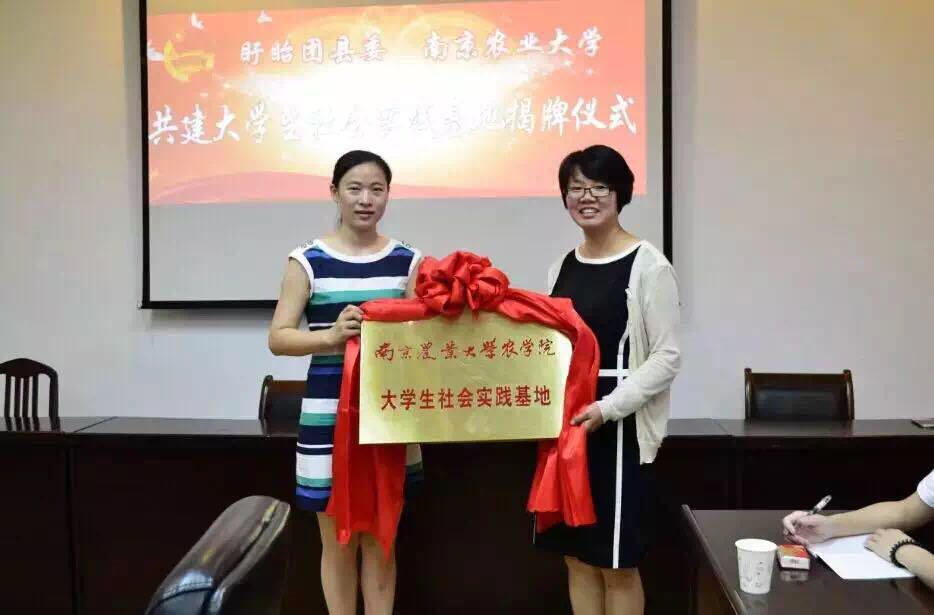 7月13日上午,淮安市盱眙县团县委与成人视频 在盱城镇人民政府举行大学生社会实践基地共建仪式。成人视频 团委书记殷美、盱眙县团委副书记杨雪、成人视频 本科生辅导员王彬、盱眙县青工青农部部长郭国卿出席揭牌仪式,盱眙县优秀大学生村官代表以及成人视频 “系农情青春行”社会实践团队全体成员参加了揭牌仪式,会议由青工青农部部长郭国卿主持。