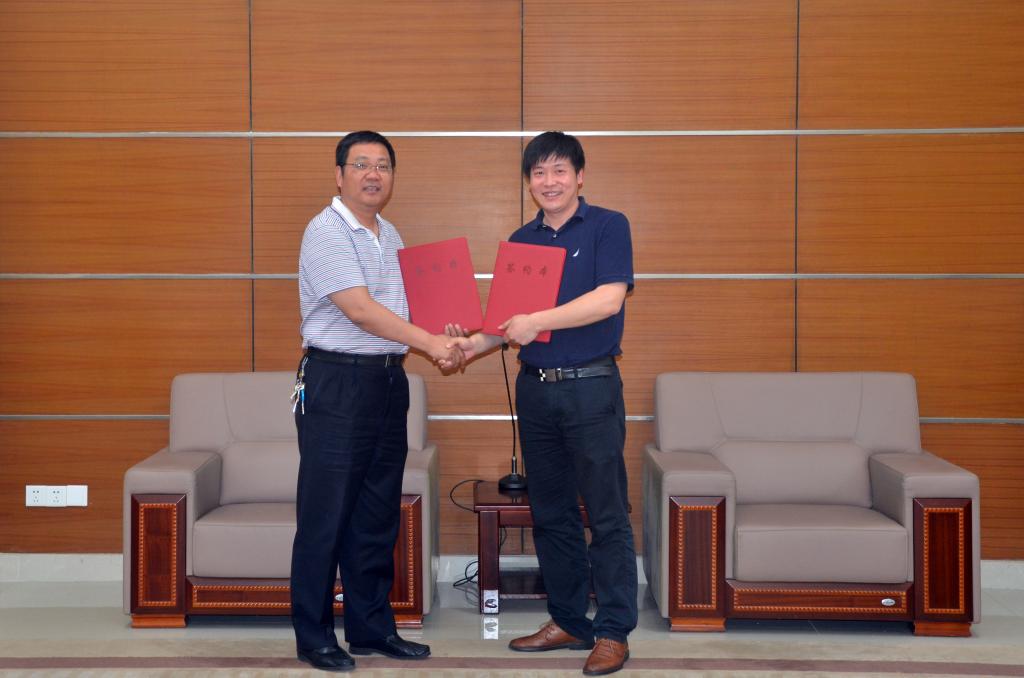 海门中学作为南通地区一所江苏省首批四星级省属重点中学,是我校在南通地区重点招生中学之一。此次“中学生科普讲座进校园”活动中,海门中学副校长王美华全程接待了我校宣传人员,带领我校教师进行校园参观,介绍海门中学本学期举办的有关学习、科技、文体活动展等。随后,海门中学校长石鑫和庄森分别代表双方,共同签署了优质生源中学共建协议书,同时,就高校与中学校园共建、生源基地合作等展开交流谈论。