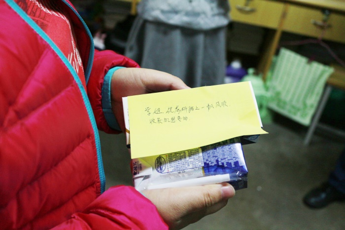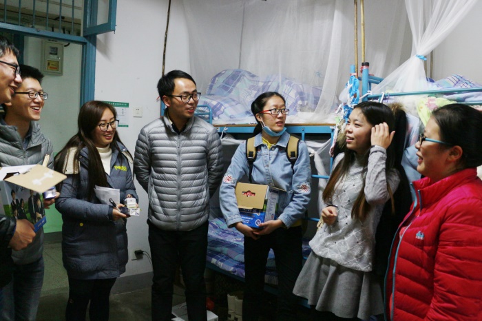 12月1日晚,成人视频 本科生辅导员和成人视频 团委学生会成员一起,进入每个宿舍,为每一位考研的同学送去冬日的温暖。