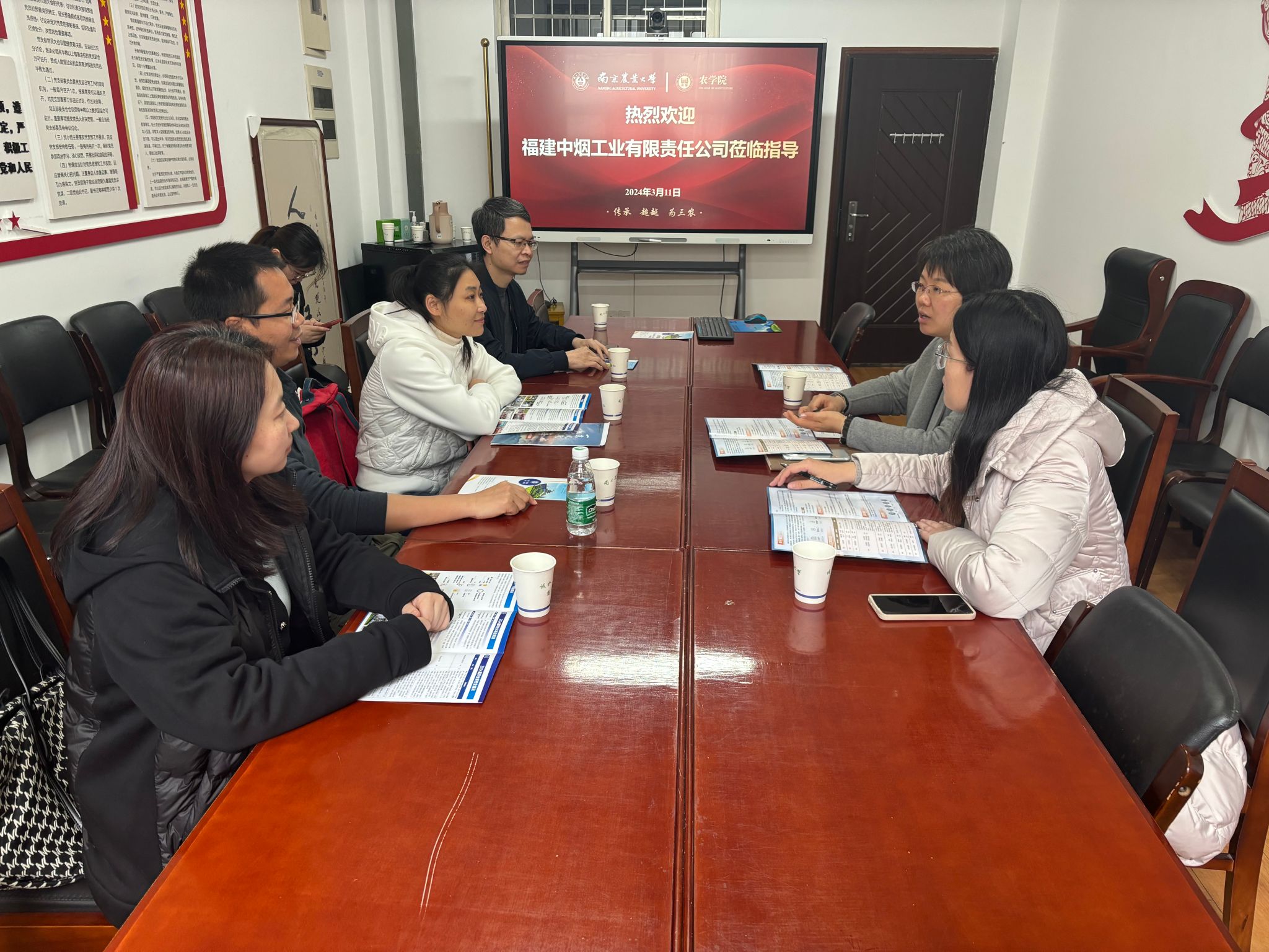 3月11日,福建中烟工业有限责任公司人力资源部和原料采购中心有关领导来成人视频 交流座谈。学院党委副书记殷美、本科生辅导员孙小雯、研究生辅导员陈杰参加座谈会。